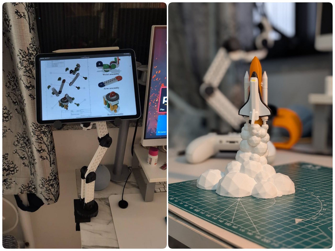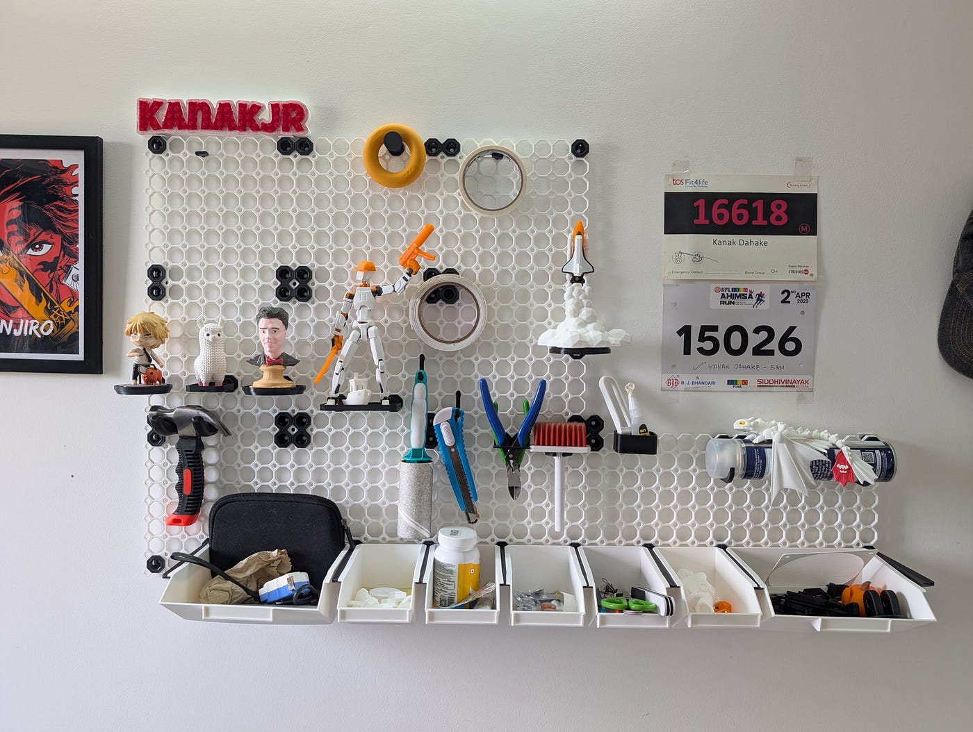 Now, my wall is a testament to the printer's power. There's a custom holder for every tool, a shelf for my favorite prints (like the space shuttle model I made), and storage bins for all the odds and ends. It's a perfectly organized space, built by the very hobby it's designed to support.